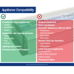 Suitable for powering UK standard appliances of that requires up to 15000W. This includes laptops, mobile phones, LCD TVs, DVD players, cordless power tool chargers, corded power tools and more.