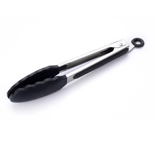 Tough stainless steel and silicone tongs. The ideal campsite barbecue companion. Serve food simply with this handy tool. Clip lock with silicone tips.