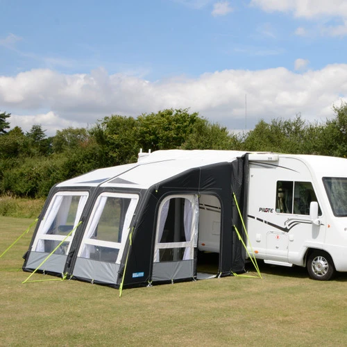 A large connecting tunnel can be attached to your motor home, either by throwing the included webbing straps over the vehicle or using a Drive-Away kit to connect to an awning rail or the front channel of any roll-out awning. The free-standing Motor Rally Drive-Away sets up in minutes and is easily inflated through a single inflation point using the high quality pump supplied or, for the ultimate in convenience, our electric Gale pump. Once set up the awning provides plenty of space for furniture and other equipment. It can be fitted with our full range of Rally optional equipment to tailor it to your needs. These options include sleeping/storage annexes, extra mesh panels, LED lighting, breathable carpets and even a conservatory.