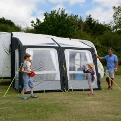 A large connecting tunnel can be attached to your motor home, either by throwing the included webbing straps over the vehicle or using a Drive-Away kit to connect to an awning rail or the front channel of any roll-out awning. The free-standing Motor Rally Drive-Away sets up in minutes and is easily inflated through a single inflation point using the high quality pump supplied or, for the ultimate in convenience, our electric Gale pump. Once set up the awning provides plenty of space for furniture and other equipment. It can be fitted with our full range of Rally optional equipment to tailor it to your needs. These options include sleeping/storage annexes, extra mesh panels, LED lighting, breathable carpets and even a conservatory.