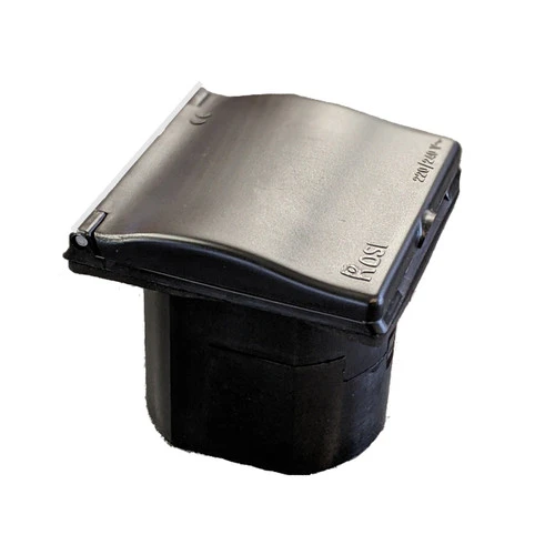 Flush Fitting Mains Inlet. 240v 16amp CEE Designed for ease of fitting. Aperture Size (H) 90mm x (W) 80mm x (D) 90mm Overall Dimensions (H) 106mm x (W) 106mm.
