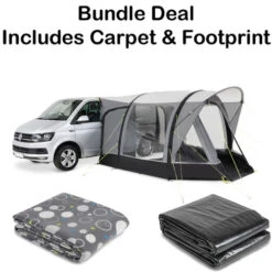 The Kampa Dometic Action AIR large living area allows for optional two berth inner tent can be fitted. The awning comes complete with a fully waterproof clip-in groundsheet which can be removed on sites that do not allow the use of groundsheet’s. A large protective canopy covers the front door – ideal for poor weather conditions.