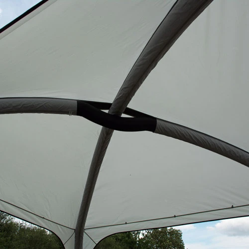 On the underside of the shelter, tensioning straps ensure a square shape is maintained whilst durable guylines and supplied pegs keep the shelter stable. Four side panels are included as standard for privacy and extra weather protection