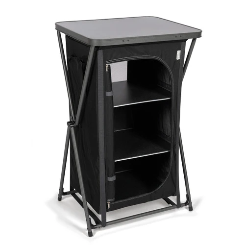 Enjoy a clutter-free camping experience with the Kampa Amber Cupboard. This easy to set-up cupboard is compact and lightweight for simple storage and transportation. Featuring three internal shelves, a strong aluminum frame and durable laminated table top. The ideal accessory for any camping trip.