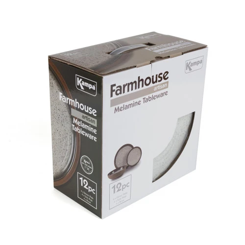 The Farmhouse set, from the Kampa Artisan collection of melamine tableware, combines attractive colours and eye-catching design. This 12-piece set, made of 100% melamine, is extremely durable, lightweight and dishwasher safe.