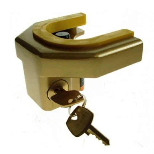 A simple cost effective coupling lock designed to fit pressed steel trailer hitches.