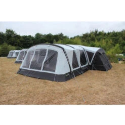 Upgraded for 2023 the multi award winning Airedale tent range is offering more value than ever before. This Premium Nine + Four berth Airedale 9.0DSE inflatable family tent has been updated further for the 2023 season, building on the success of the critically acclaimed and exclusive multi-functional twin double side annexe (Registered Design). These annexes have been designed with a single Air Tube instead of the Steel Pole, making it a true Family Air Tent, and giving it much smoother ergonomic lines, plus an additional windows and curtains. The same optional internal 2 berth inner tent is still available which increases the total sleeping capacity by 2, however the tent comes with the right hand inner as standard. Plus a further option to hang a Universal inner tent in the living space making 4 in total, thus allowing a maximum sleeping capacity of Thirteen. The parallel design of the porch area means that only a fraction of extra pitch space is used to the side of the tent. A huge roll-back panel complete with mesh windows separates the internal living space from the front porch, which can be zipped back or totally enclosed, this allows for complete versatility whilst offering ventilation and a pleasant feeling of open space. Further multiple ground-breaking and practical additions such as the new fully removable front vestibule hook and loop fastening groundsheet that gives a far cleaner appearance and avoids trip hazards in this area. Utilizing the premium innovations that you would expect from our flagship Airedale collection, the Airedale 9.0dSE includes a double width Patio style side door with Phoenix mesh ventilation, a wardrobe pole, and zip-up curtains to name a few. This is the perfect large family tent for those who truly appreciate a spacious camping experience.