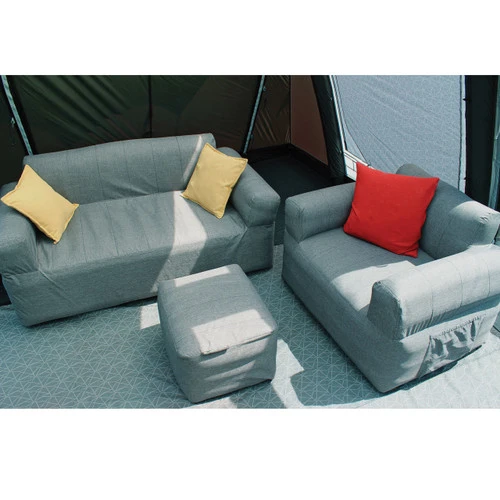 This inflatable furniture range by Outdoor Revolution, setting the bar even higher when it comes to added warmth, luxury, comfort, support, and style. Comprising of a 2-seat sofa, armchair & foot stool. At the heart of this super soft & cosy inflatable furniture range is the all new Thermo foam lined luxury fabric in blue grey mottle (another first for Outdoor Revolution) with stylish stitched quilted panels on the seat, arms & chair backs, creating the cosiest & most comfortable inflatable camping furniture range yet.