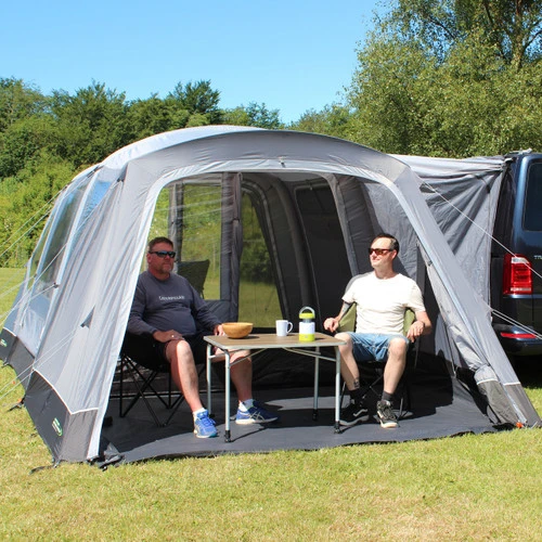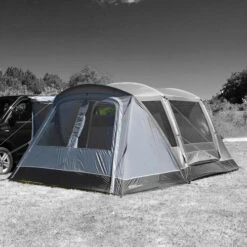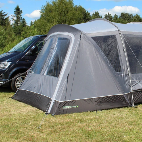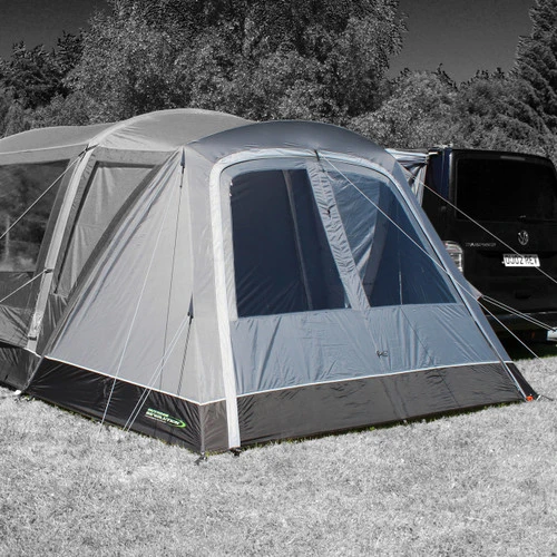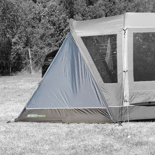 The Cayman Zip On Porch Door is a versatile addition to a variety of 2022 Cayman Drive-Away Awnings. Connected using a combination of Zips & Toggles, it fits snugly around the sleeve of eyebrow canopy poles. There is a large zip back door which allows for full or half opening from both sides or top to bottom, and creates a practical sheltered and private space to suit personal requirements. Supplied with a toggle-in groundsheet and a pair of curtains to close the windows to the outside world, this also allows for the use of a Cayman Porch Extension Cabin Inner Tent which converts the now enclosed porch into a self-contained bedroom.