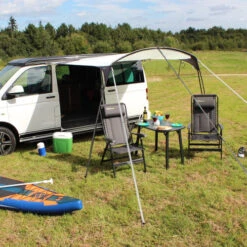 The revolutionary Movelite Canopy Retro Connector is an indispensable optional extra for owners of the Movelite Canopy, permitting the direct attachment of this porch extension to your campervan or motorhome, creating a large utility space, where you can comfortably relax or cook during adverse weather conditions, with complete protection against the elements; perfect for use as a temporary area for unwinding after a long evening, when you may be reluctant to immediately pitch your Movelite drive away awning.