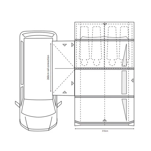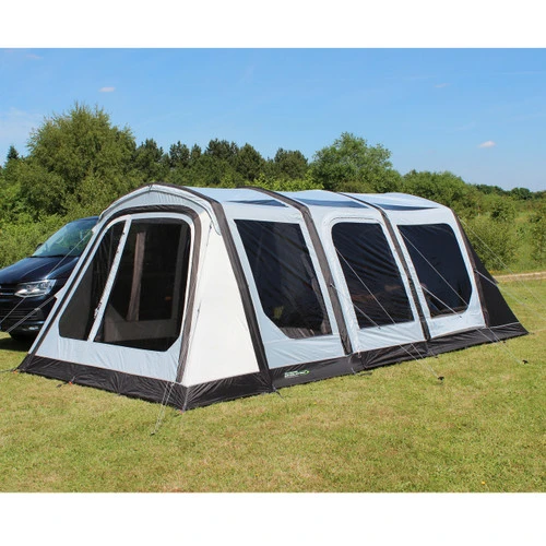 As you would expect from our premium drive-away collection, high-end features are in abundance here, including a full mesh fly-screen on the front door and zip-up curtains. The contemporary design of the 2/3rds zip back door, along with the aesthetically pleasing new colour-way means this drive-away awning will be the perfect complement to any campervan or motorhome.