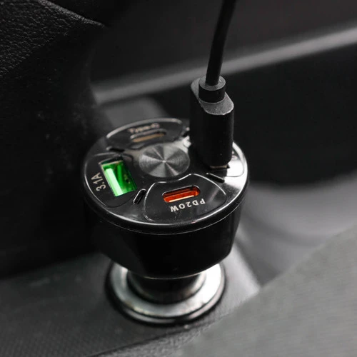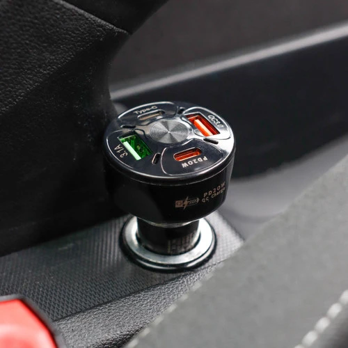 This 12V car USB charger is equipped with four charging ports for Type C USB charging and Type A USB charging. Charge multiple devices while on the road.