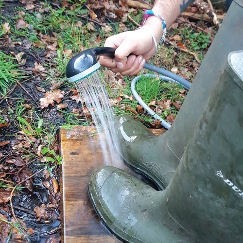 A handy transportable shower, ideal for use outdoors whilst camping, caravanning, at festivals or in the garden at home.