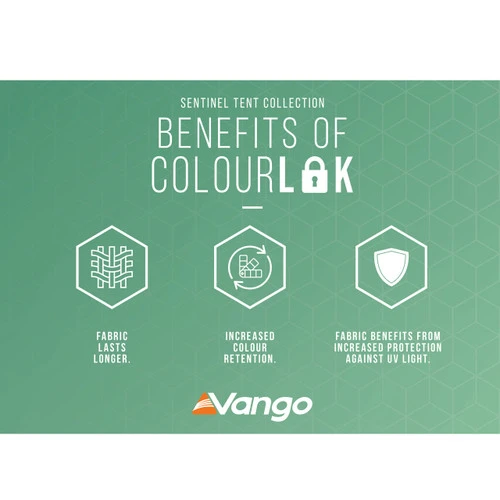 - Sentinel Elite Fabric – Sentinel Elite fabric is one of the strongest and most durable fabrics in our collection. Testing at more than double the strength of standard flysheet fabric, highly waterproof with a 5,000mm HH rating, and with our new ColourLok technology, its performance is exceptional