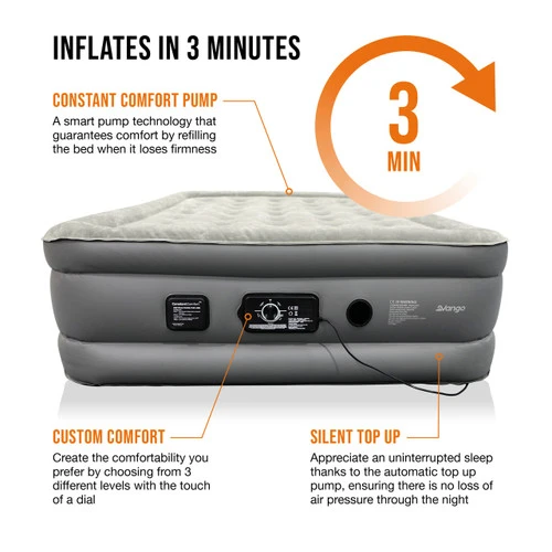 - Silent top up – Appreciate an uninterrupted sleep thanks to the automatic top up pump, ensuring there is no loss of air pressure through the night