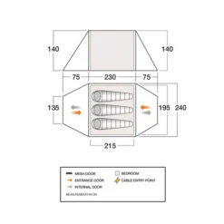 - Bathtub Groundsheet – Waterproof groundsheet extends 10cm above ground level to keep your tent dry in adverse weather
