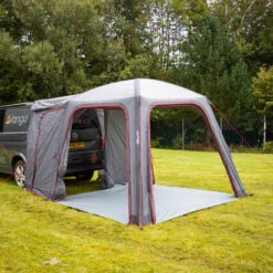 Vango’s first rear attachment awning, the Tailgate AirHub is ideal for couples or independent travellers with a spirit of adventure. The perfect quick pitch for short stops, it has been designed with active adventurers in mind. The inflatable AirBeam® structure means this drive away awning is pitched in a matter of minutes and deflated just as fast. Effortless attachment requires only pegging straps at the front of the vehicle and tunnel area, allowing the awning to fit neatly without the need for kador rails. However, should you wish to use them, the traditional attachment options of roof bar attachment tabs, kador and a sleeve for pole and clamp are also included. Two doors in the connecting tunnel make for a convenient storage area, while Vango’s reliable and lightweight Sentinel Active Fabric, ensures a compact pack size, easily stored away when not in use. The Tailgate AirHub does not require the tailgate to be open to support the structure, so you can simply roll away the connecting tunnel when you want to drive off and explore for the day. Be ready for any adventure with the Tailgate AirHub.