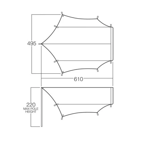Offering great flexibility with multiple eyelets and one king pole, the Family Shelter gives you additional covered space which is perfect for cooking or dining under.